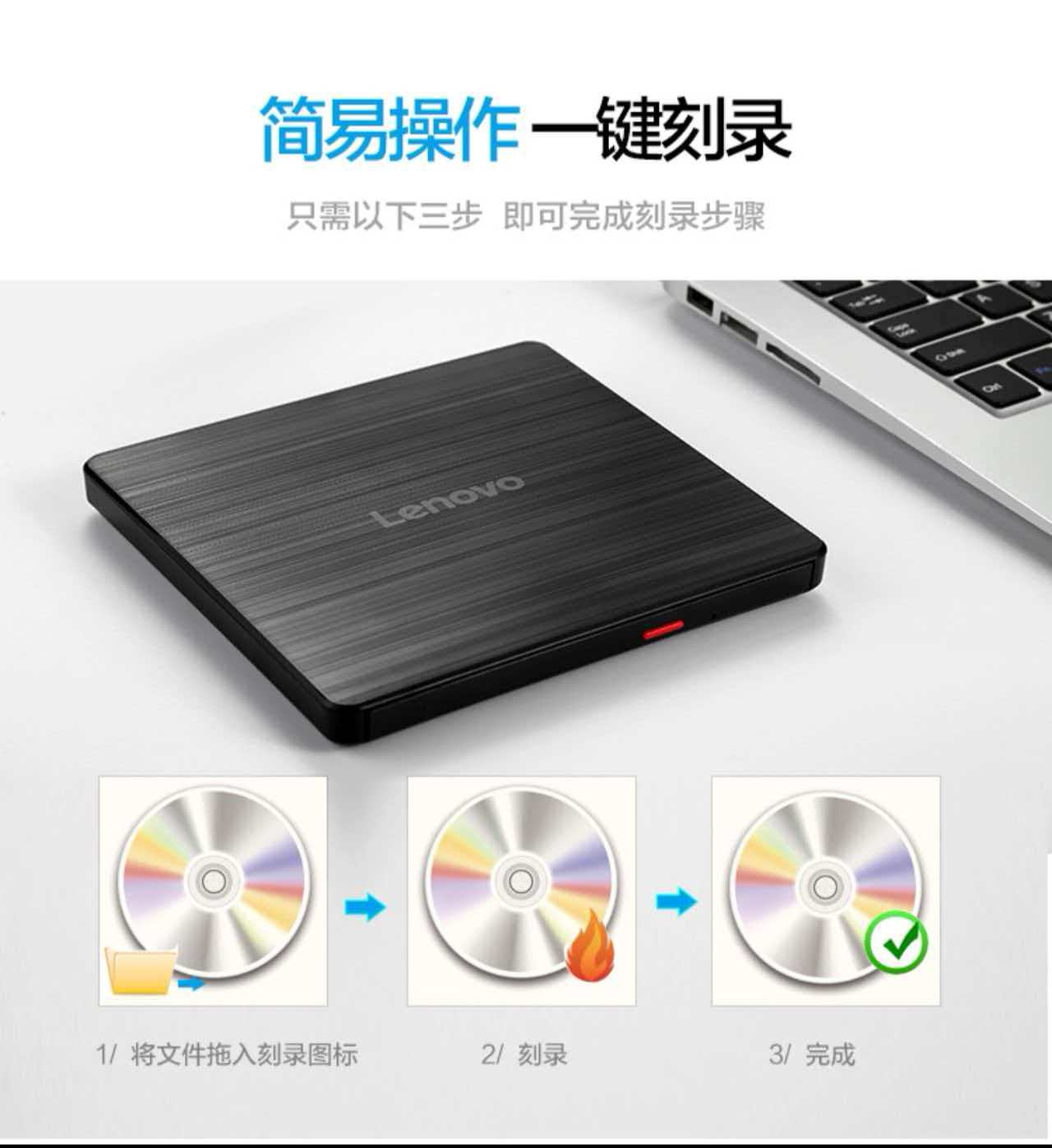 • 商品名称:联想(Lenovo)8倍速 USB2.0 外置光驱 外置DVD刻录机 GP70N